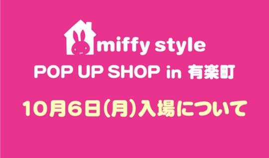 【入店方法に関して】10月6日(月)miffy style POP UP SHOP in ...