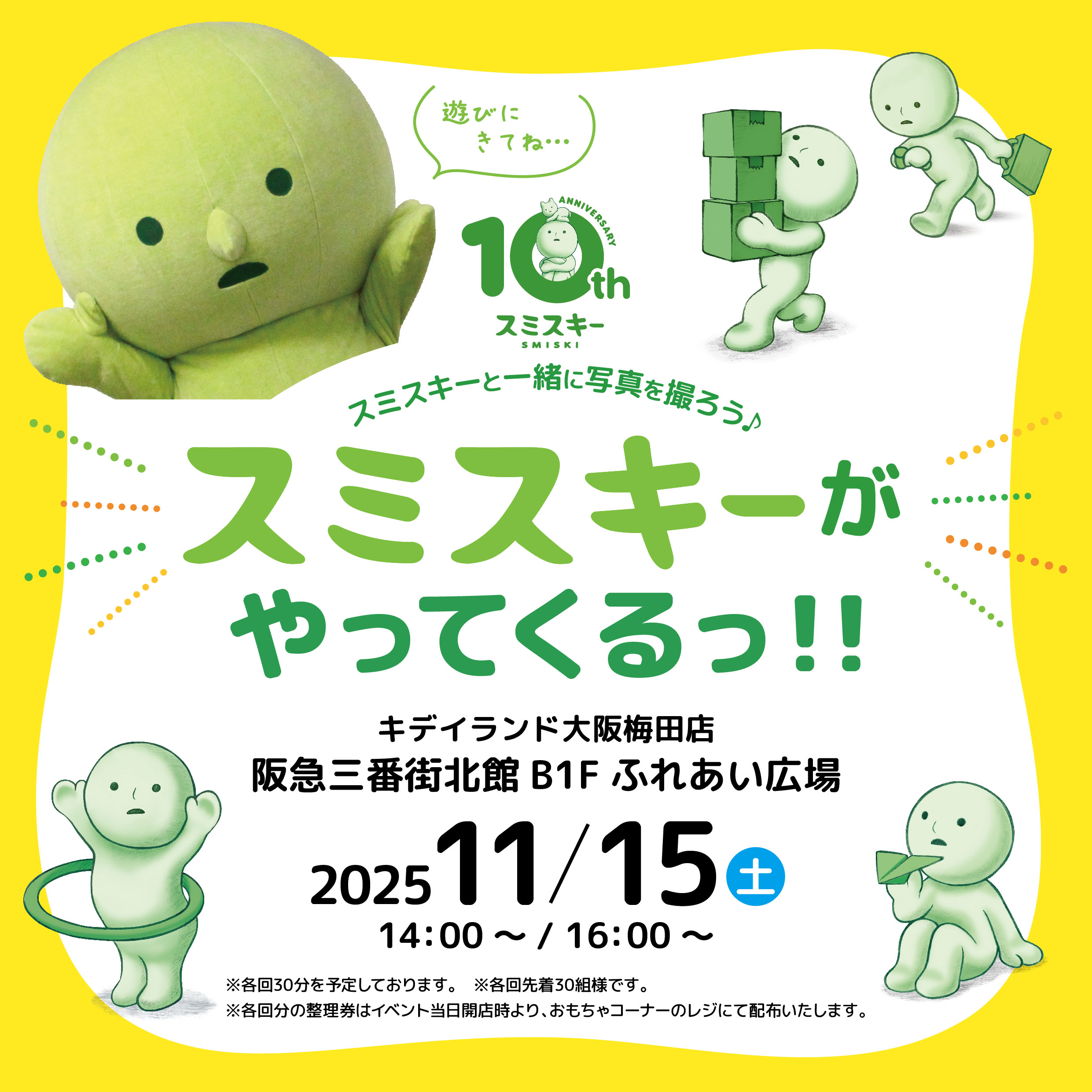 2025年11月7日(金)〜11月18日(火) スミスキー等 ランキングスクエアにてイベント開催! @ 大阪梅田店 2024年11月7日(金)〜11月18日(火) スミスキー等 ランキングスクエアにてイベント開催! @ 大阪梅田店 (※最終日は18:00までとなります。) お問合せは大阪梅田店まで