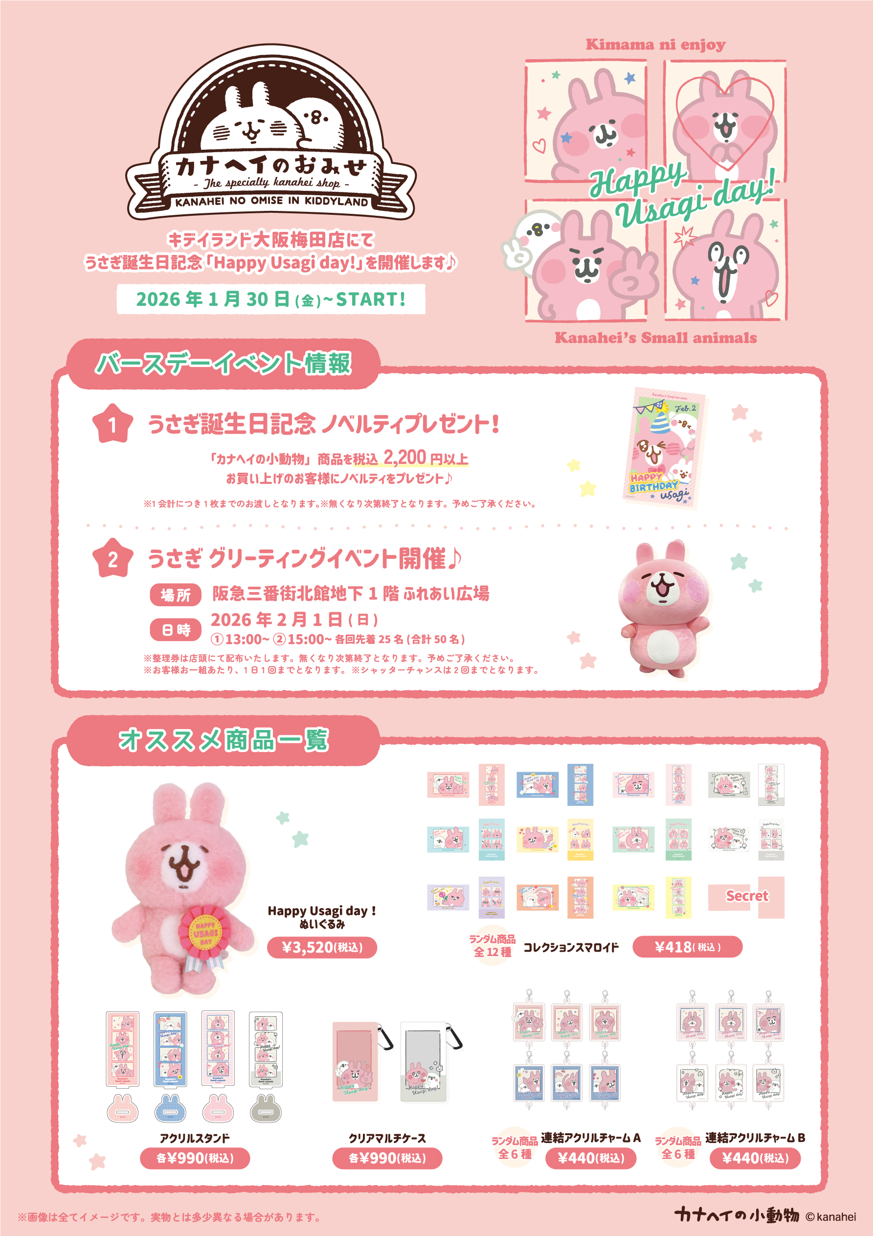 2026年1月30日(金)~START!「Happy Usagi day!」@ 大阪梅田店『カナヘイのおみせ』
