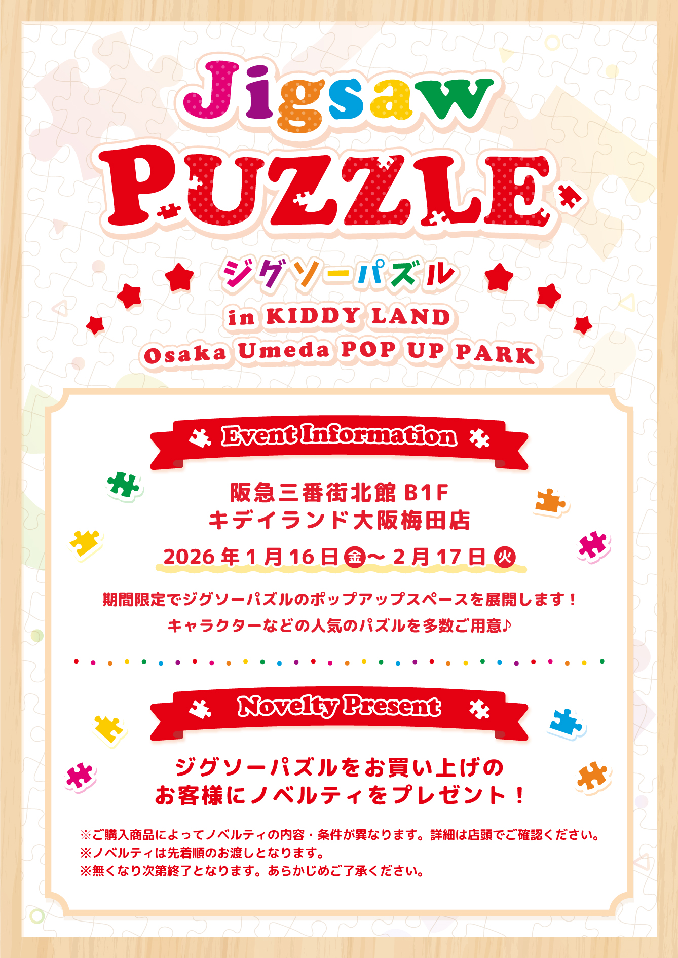 2026年1月16日(金)〜2月17日(火) ジグソーパズル in KIDDYLAND @ 大阪梅田店『POP UP PARK』
