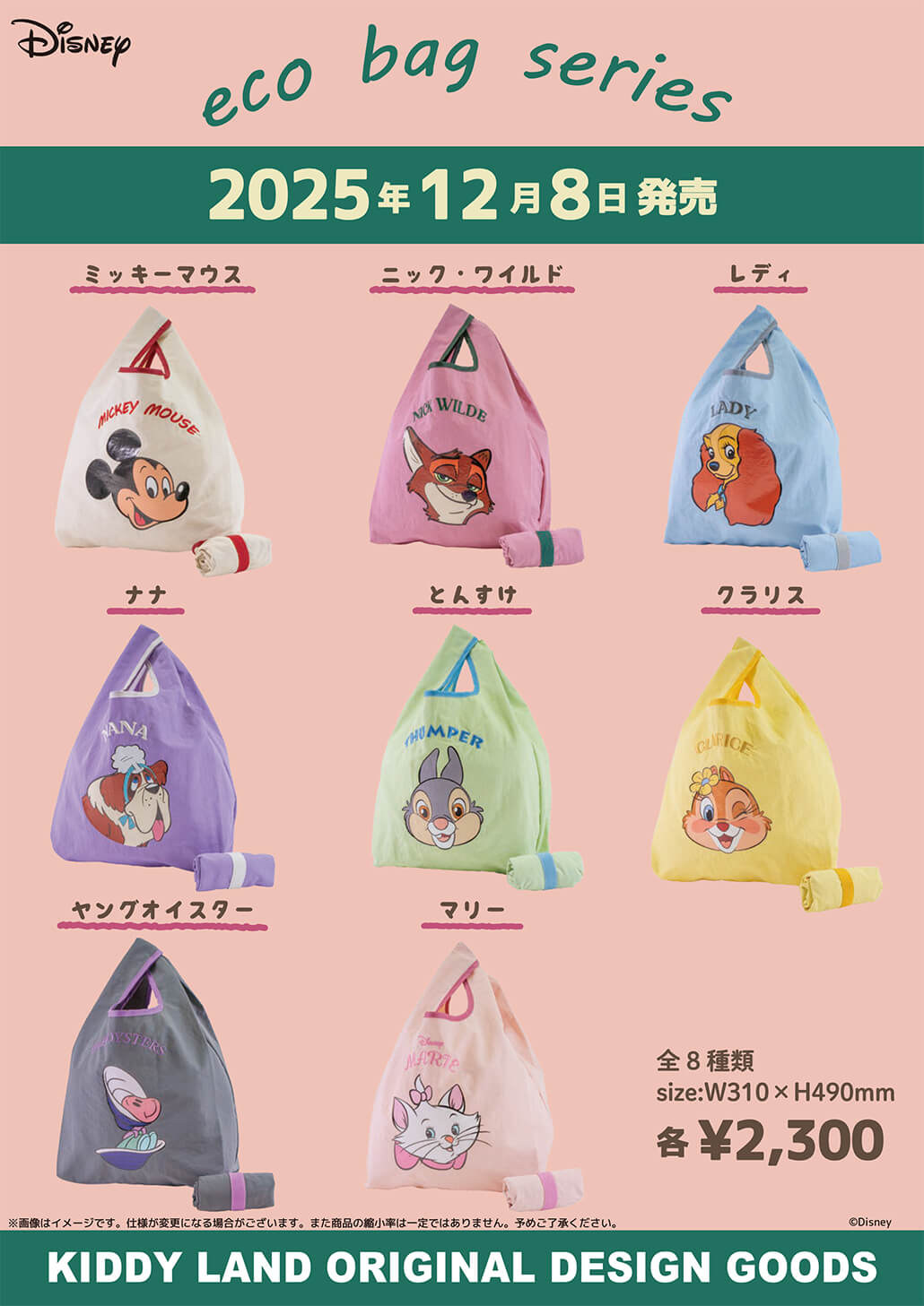 2025年12月8日(月)~発売(12月1日(月)~ららぽーと3店舗で先行発売!) キデイランド オリジナル ディズニーエコバッグ @ キデイランド19店舗