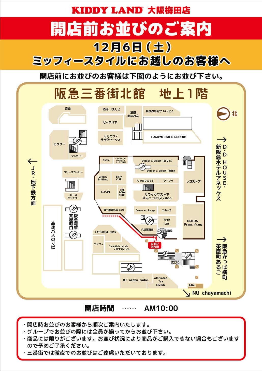 miffy style大阪梅田店 2025年12月6日(土)の開店前お並び列のご案内