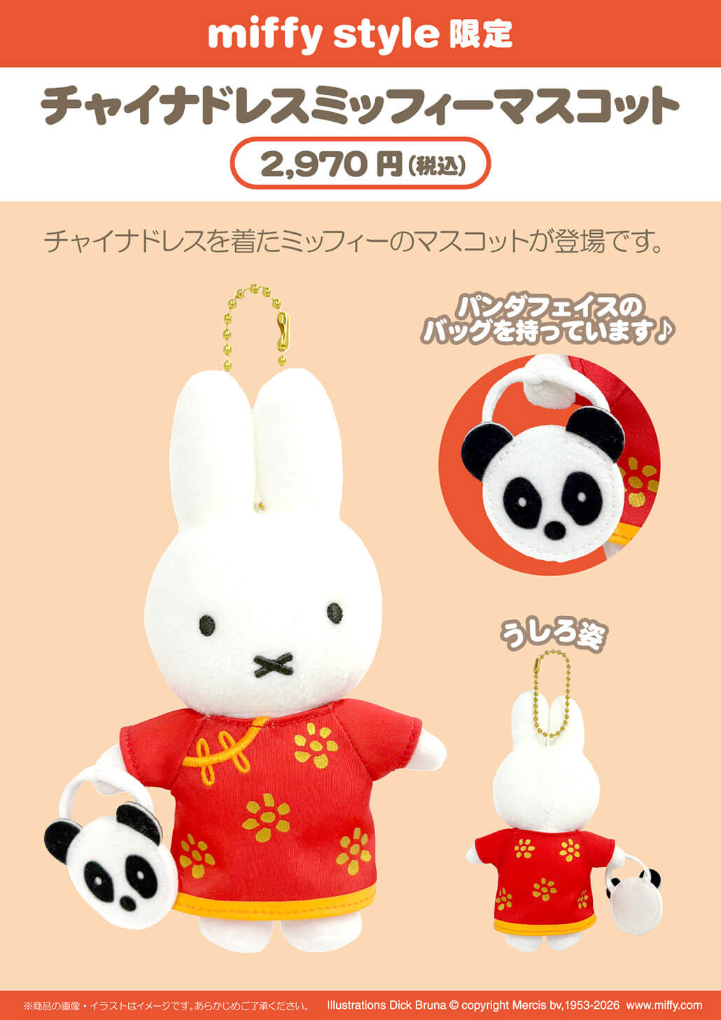 2026年2月7日(土)発売予定!miffy style限定 チャイナドレスミッフィーマスコット&マウスパッド&ダイカット置き時計