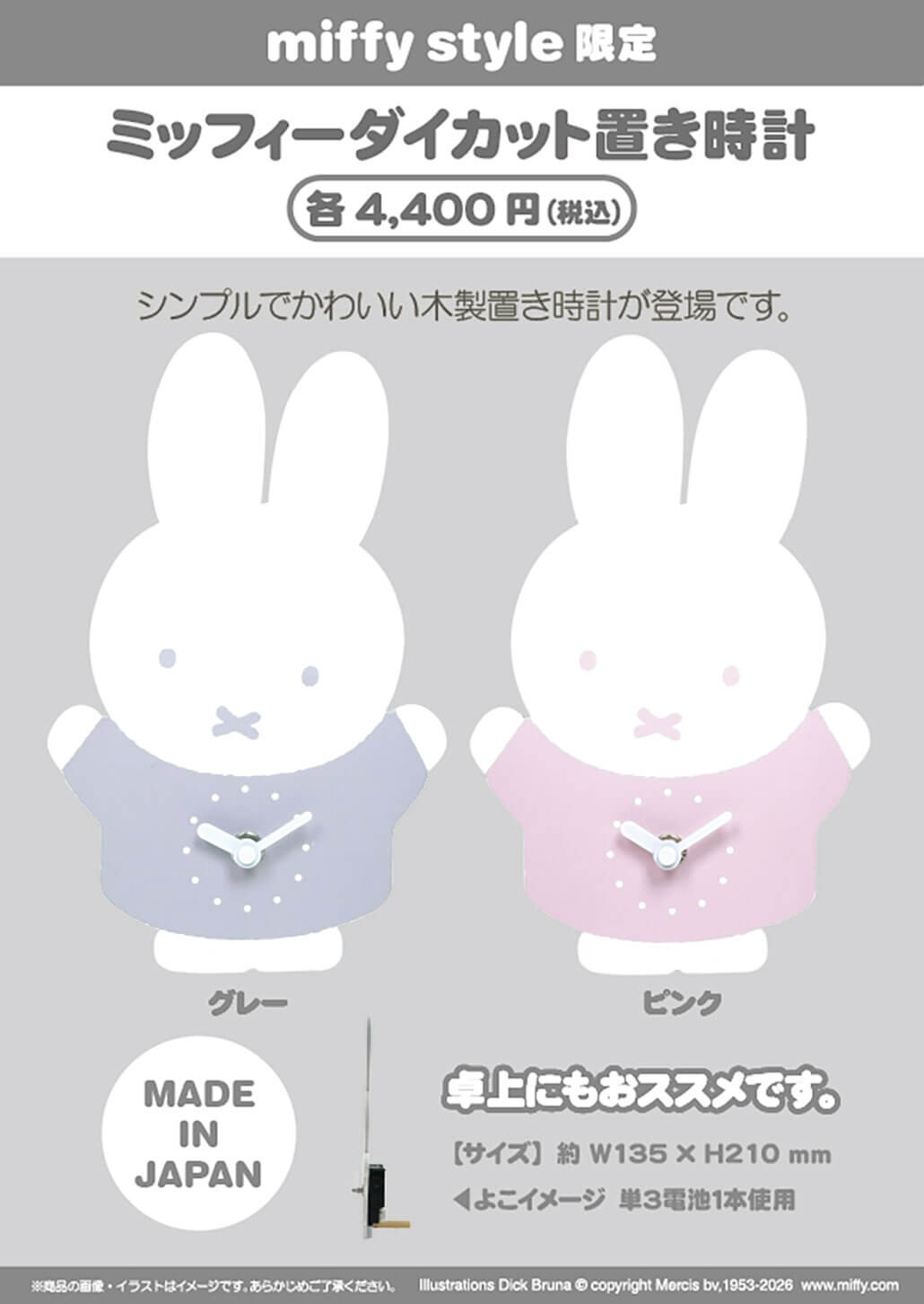 ※「ダイカット置き時計」はmiffy style onlineでの発売はございません。