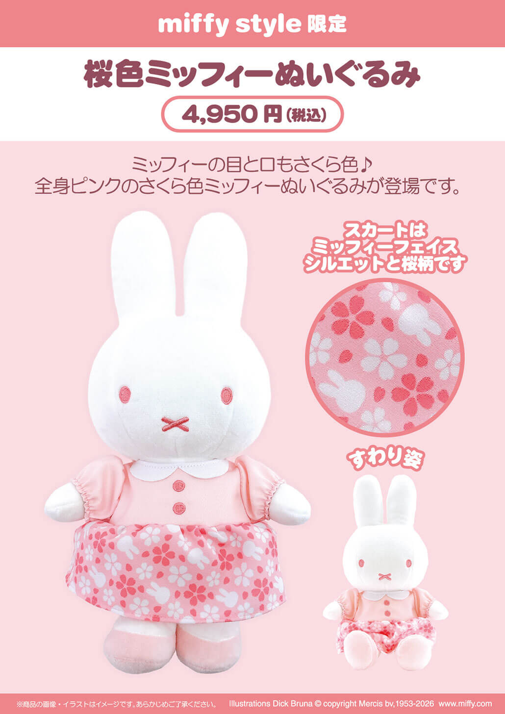 2026年3月14日(土)発売予定!miffy style限定 桜色ミッフィーぬいぐるみ