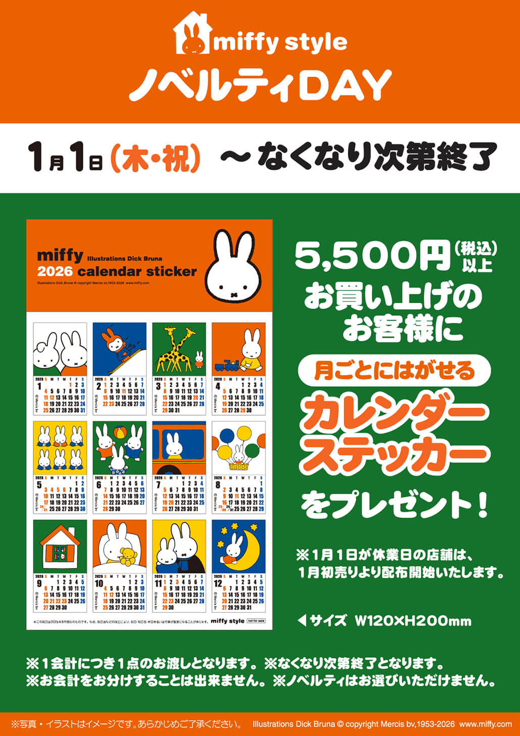 2026年1月1日(木・祝)~スタート!miffy style 各店ノベルティデイ