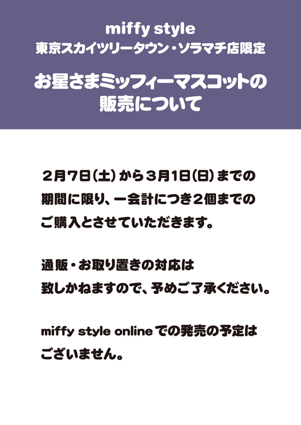 2026年2月7日(土)発売予定!miffy style東京スカイツリータウン・ソラマチ店限定 お星さまミッフィーマスコット 上記商品に関するお問合せは、miffy style東京スカイツリータウン・ソラマチ店まで