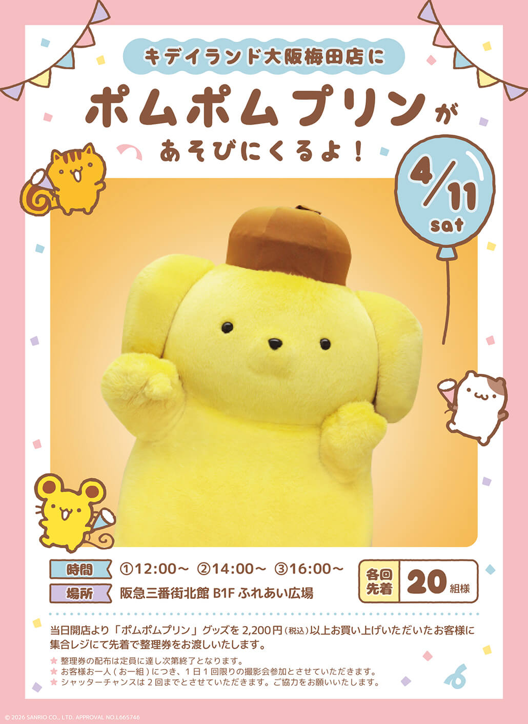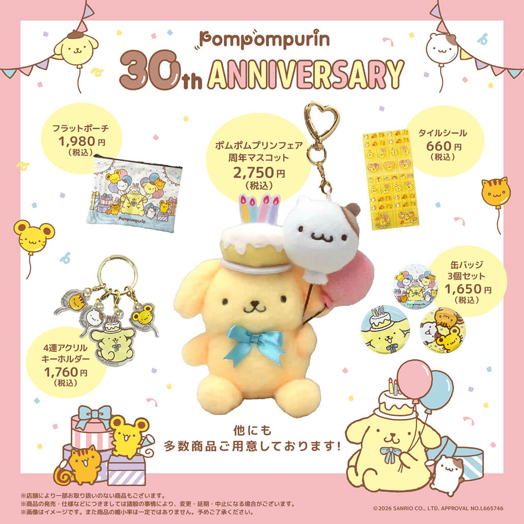 2026年4月10日(金)~!ポムポムプリン30周年 ANNIVERSARY@キデイランド15店舗