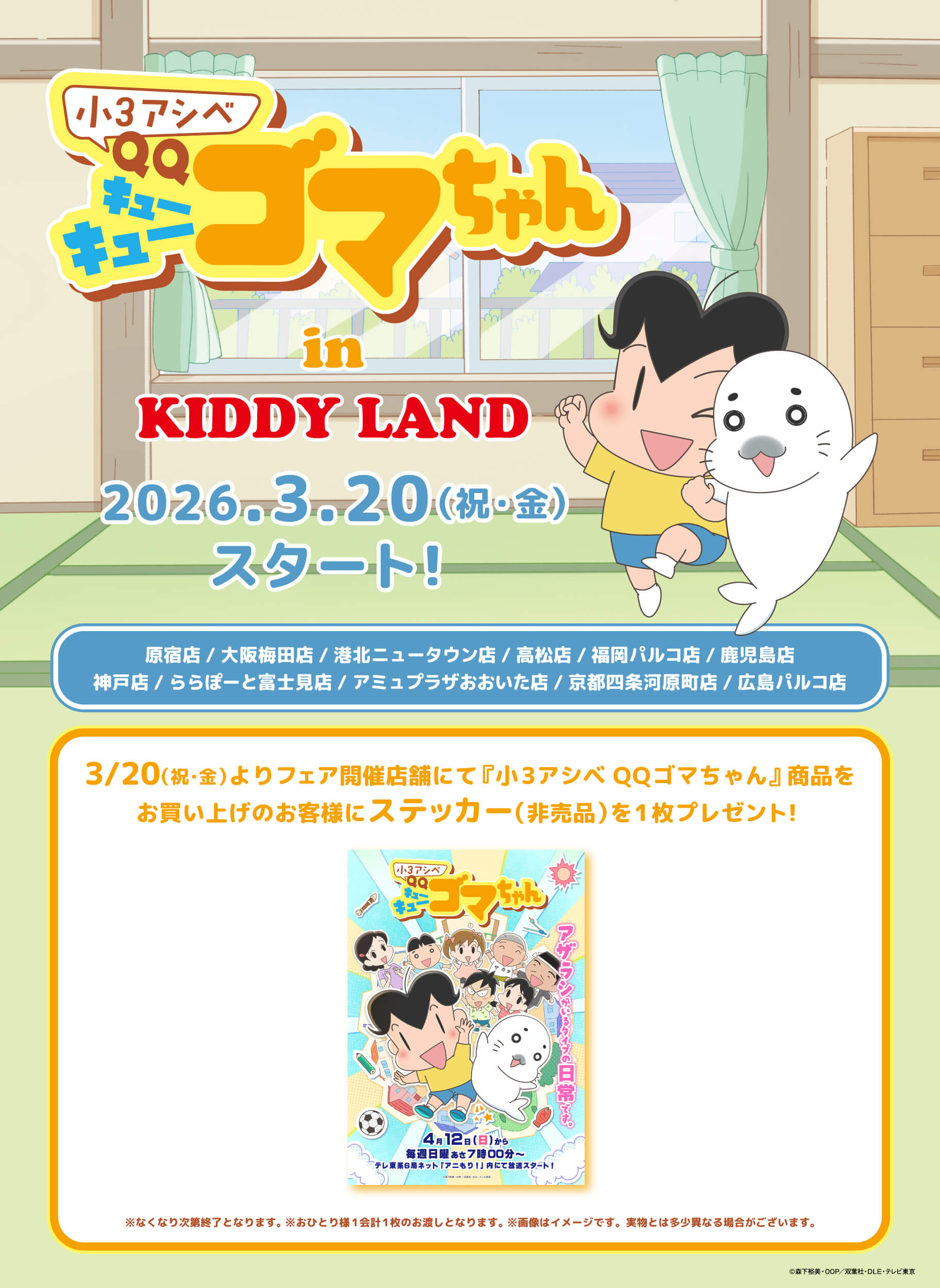 2026年3月20日(金・祝)スタート!小3アシベ QQゴマちゃん in KIDDY LAND @キデイランド11店舗