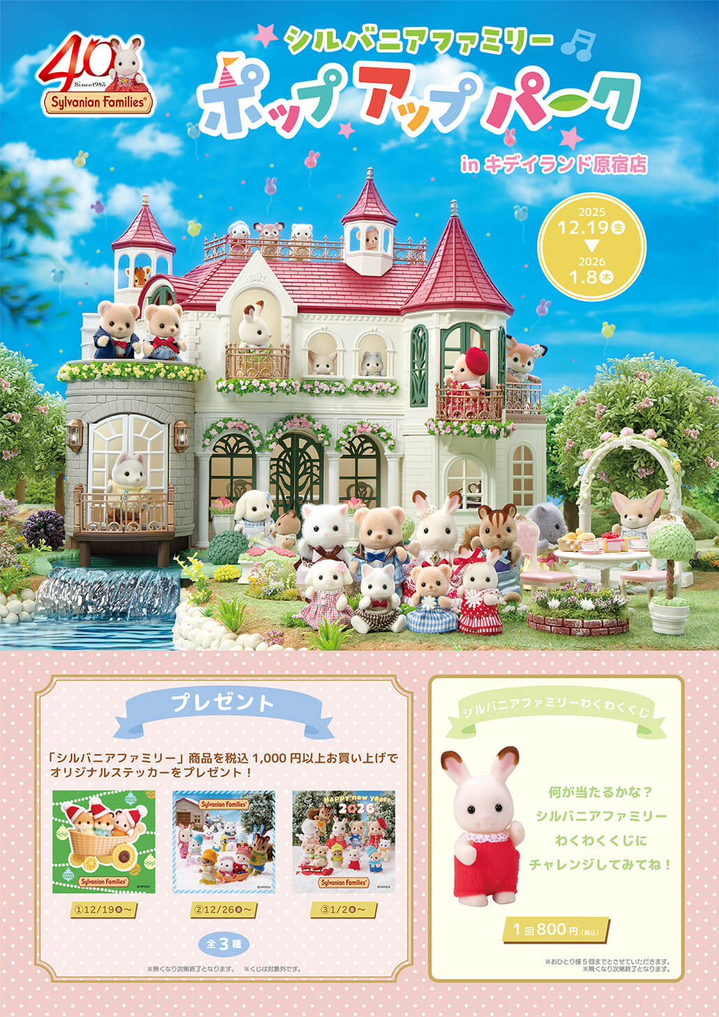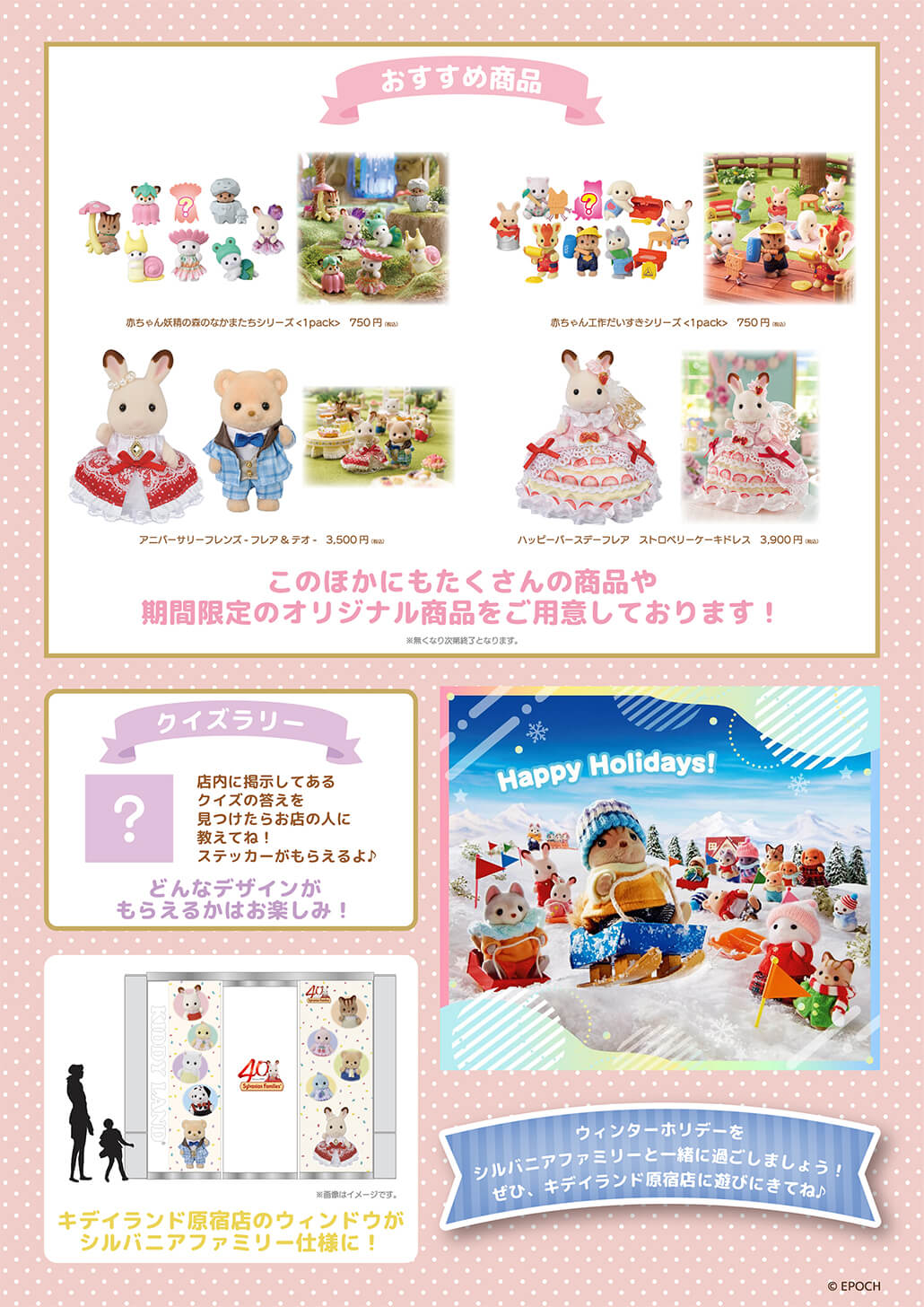 2025年12月19日(金)~!シルバニアファミリーポップアップパーク @ 原宿店 年末年始の営業時間は、 12月31日(水) 11:00~18:00 1月1日(木) 休業日 1月2日(金) 通常営業 です。ご来店の際は、ご注意ください。 お問合せは、 原宿店まで