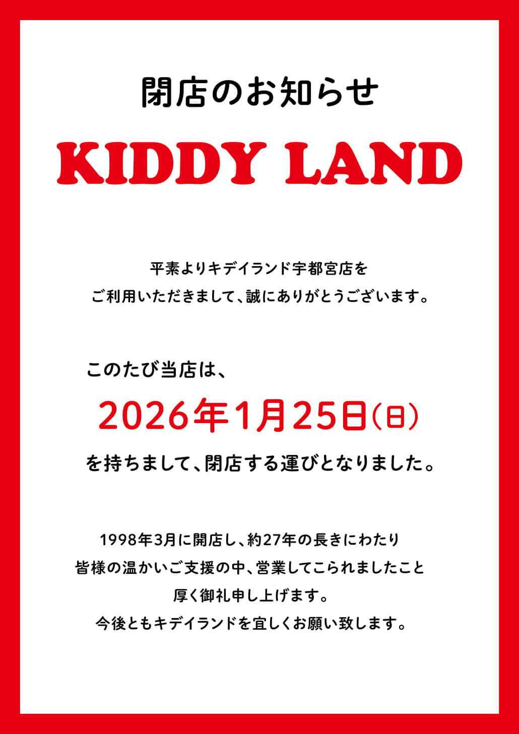 【閉店のお知らせ】2025年1月25日(日)キデイランド宇都宮店